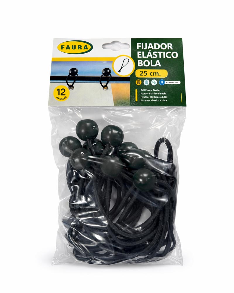 La Bola de Fijación Elástica de 25 cm es ideal para la sujeción de lonas y mallas agrícolas. Su diseño elástico permite un ajuste flexible y seguro, manteniendo los materiales organizados y en su lugar. Equipada con protección anti-UV, garantiza durabilidad frente a condiciones climáticas adversas. Perfecta para aplicaciones agrícolas y fácil de instalar, asegurando un rendimiento óptimo.