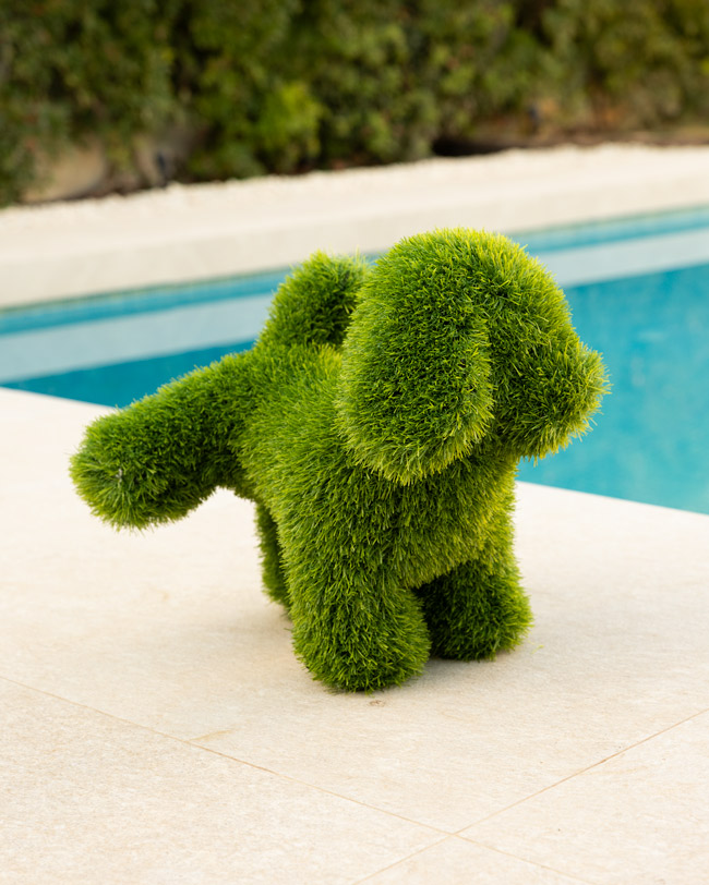 Decora tu jardín o terraza con esta original figura de césped artificial en forma de perrito levantando la patita. Resistente al sol y la lluvia, no necesita mantenimiento y aporta un toque divertido y natural a cualquier espacio exterior.