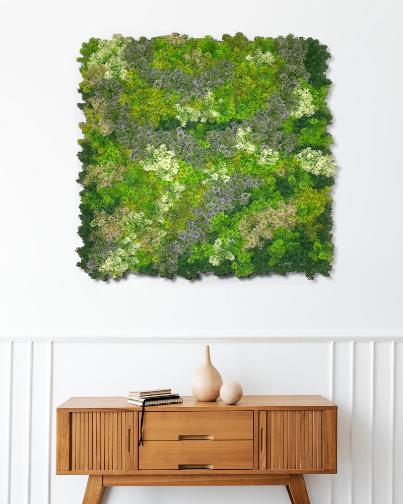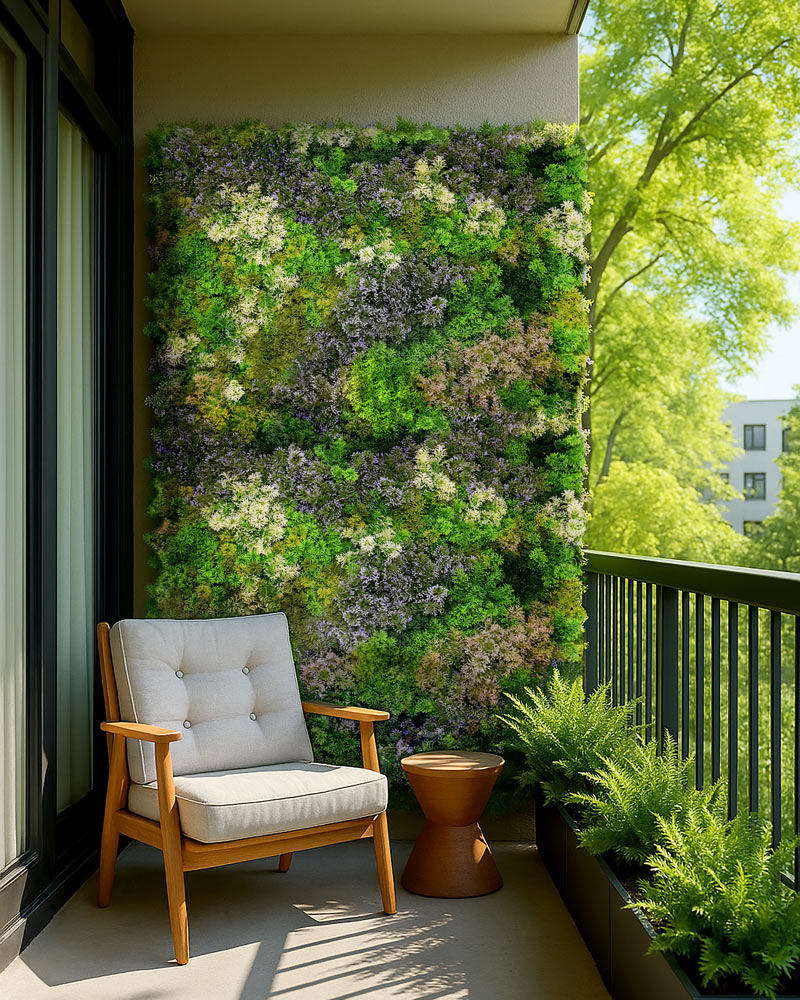 En resumen, su diseño realista y su fácil mantenimiento lo convierten en una opción destacada para aquellos que desean embellecer sus espacios con un jardín vertical de alta calidad.