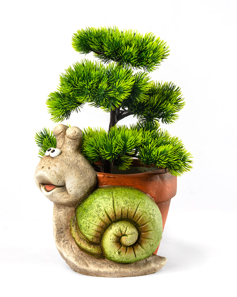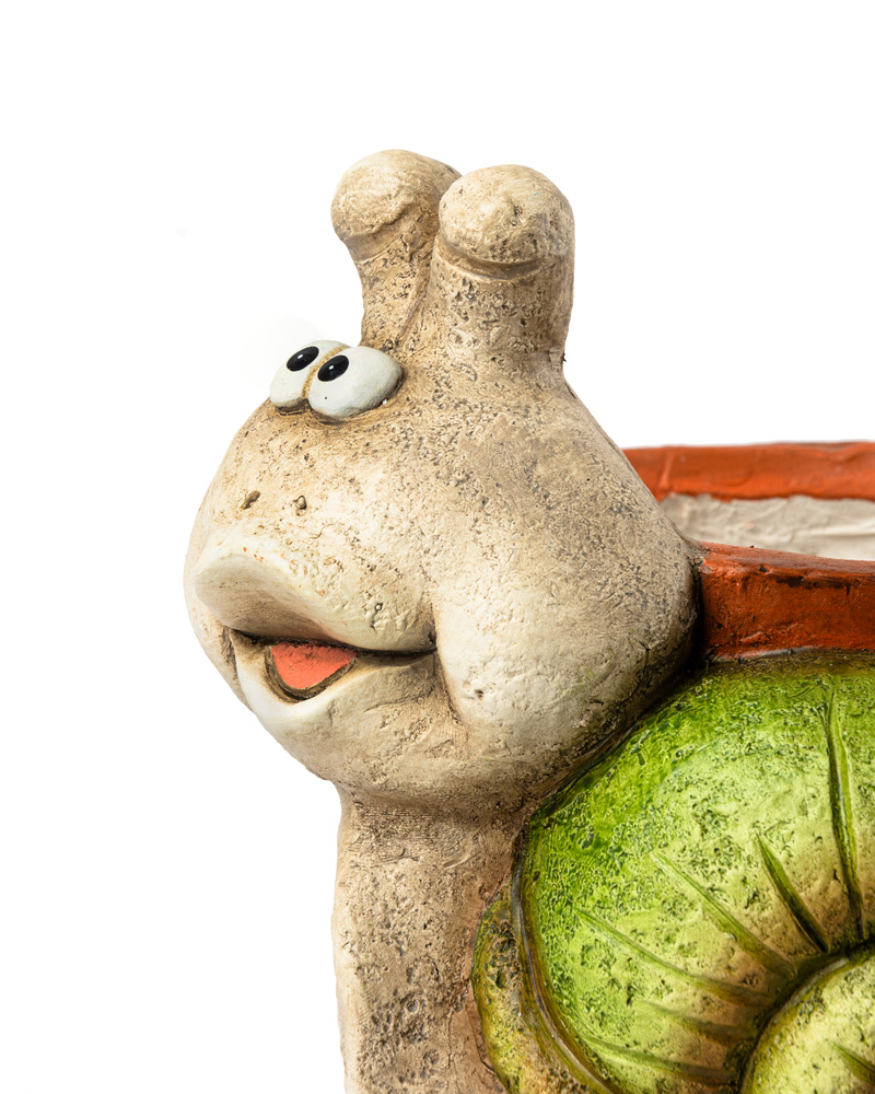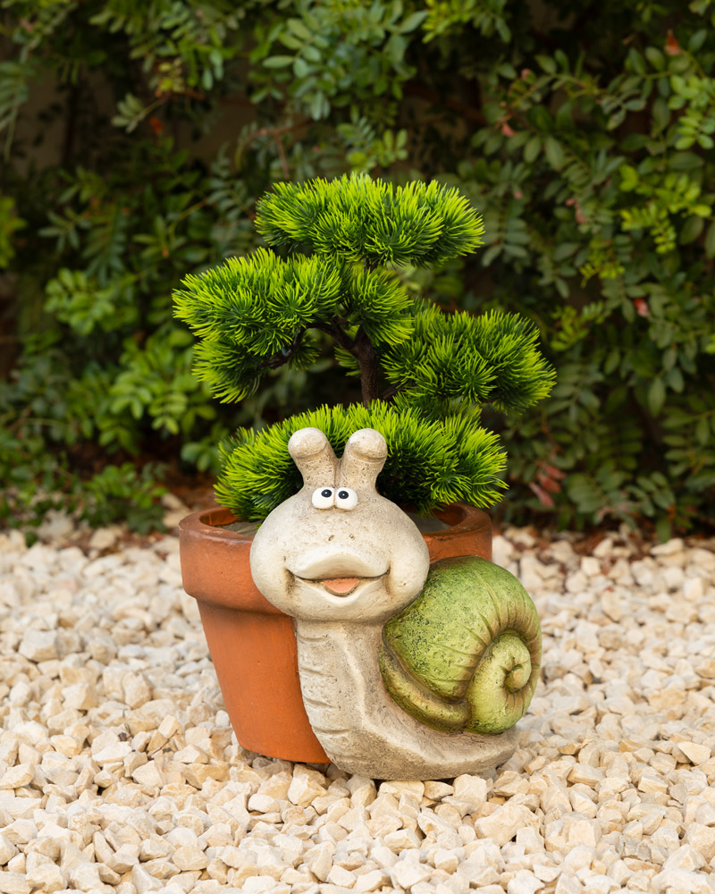 Dale un toque divertido y natural a tu jardín o a tus espacios interiores con este encantador macetero decorativo de caracol, elaborado en poliresina de alta calidad. Su diseño detallado combina una maceta rústica con una simpática figura de caracol de gran expresión, aportando un estilo alegre y original a cualquier ambiente.