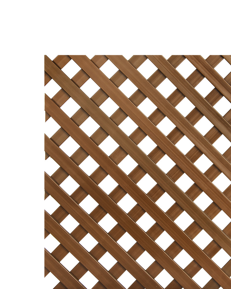 Disponible en varios colores y con un cuadro de luz de 1,8 cm, el panel de celosía se adapta a diferentes proyectos de cerramiento, decoración o separación de ambientes, tanto en jardines como en terrazas, balcones o espacios interiores.