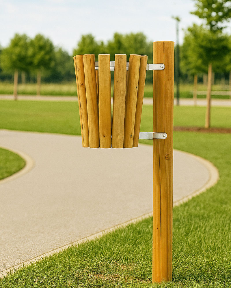 Fabricada con madera de alta calidad, la Papelera Cazorla está construida para resistir las inclemencias del tiempo, garantizando una larga durabilidad sin perder su elegancia natural. Su base ancha asegura estabilidad, incluso en condiciones ventosas.