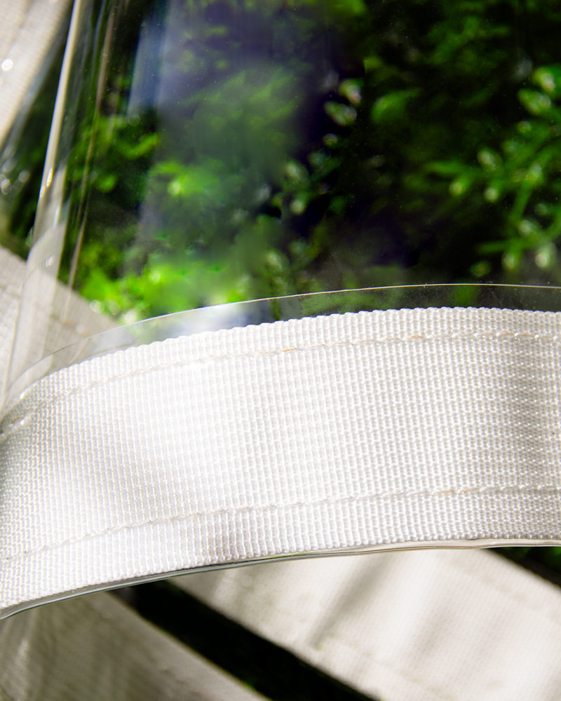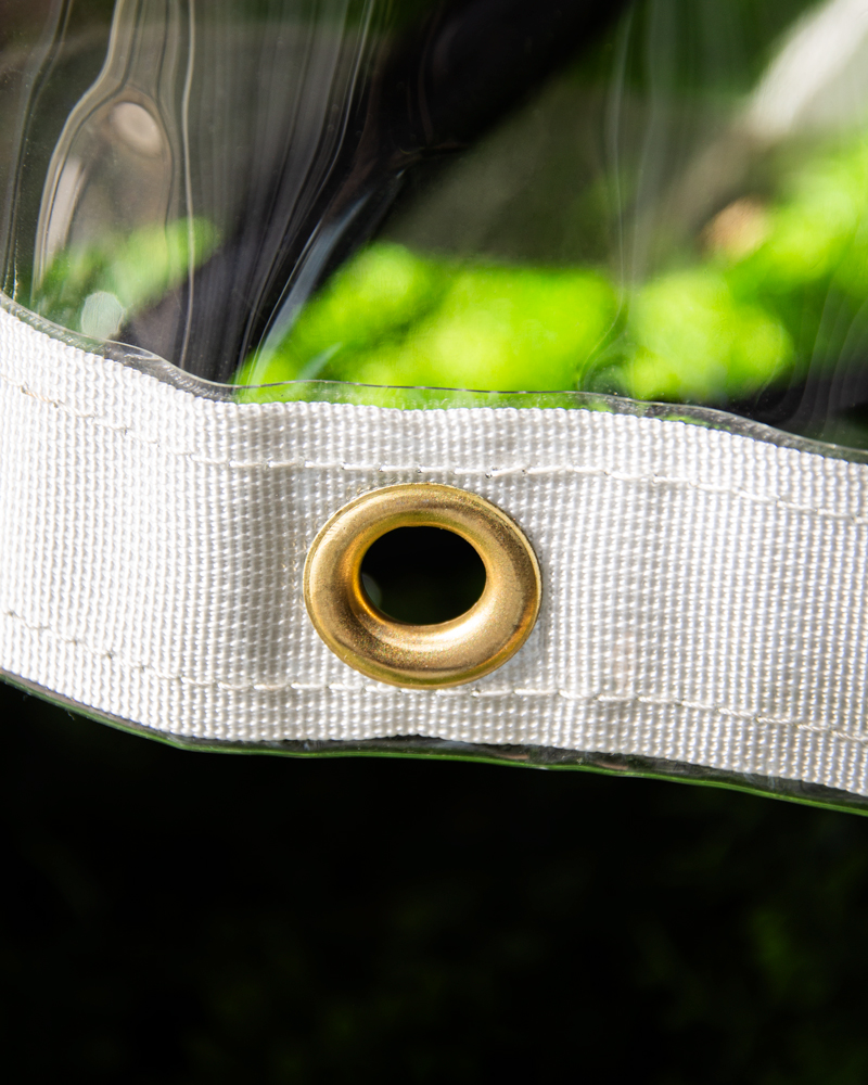Este toldo transparente reforzado es la solución perfecta para mantener tu espacio exterior protegido sin sacrificar la luz natural. Fabricado en PVC transparente de alta calidad (+/- 5% – 20 milésimas de pulgada), cuenta con un perímetro reforzado con tela blanca y esquinas reforzadas con cinta blanca para mayor durabilidad.