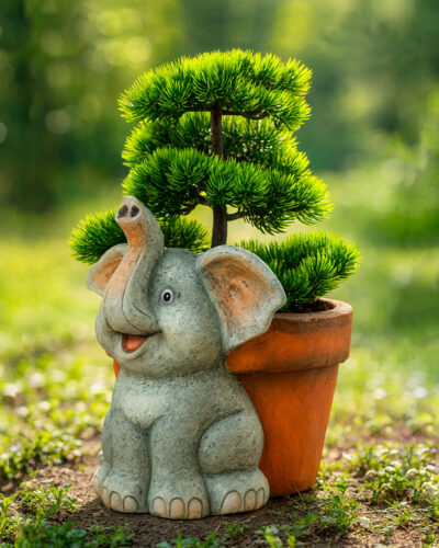 Macetero de poliresina con diseño de elefante. Ideal para jardín, terraza o interior. Perfecto para suculentas y plantas pequeñas.