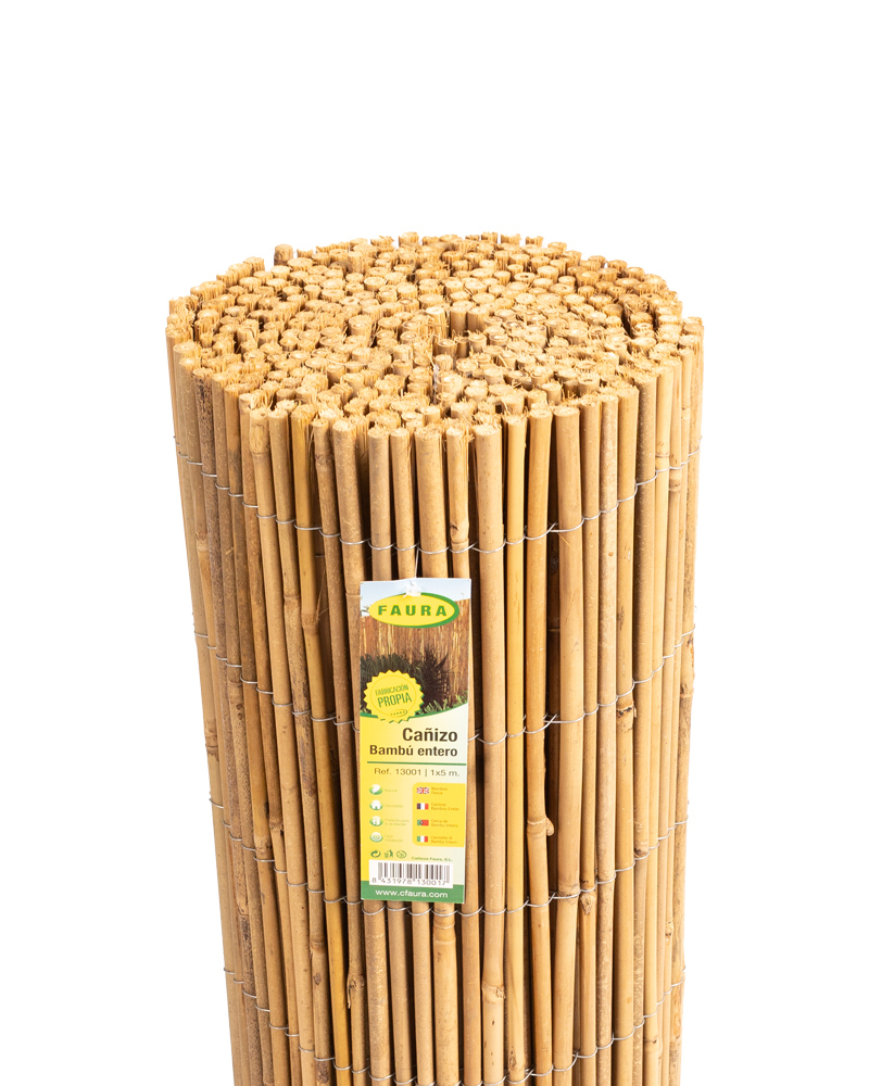 El Cañizo Bambú Entero está compuesto por varillas de bambú natural, lo que le proporciona una gran resistencia