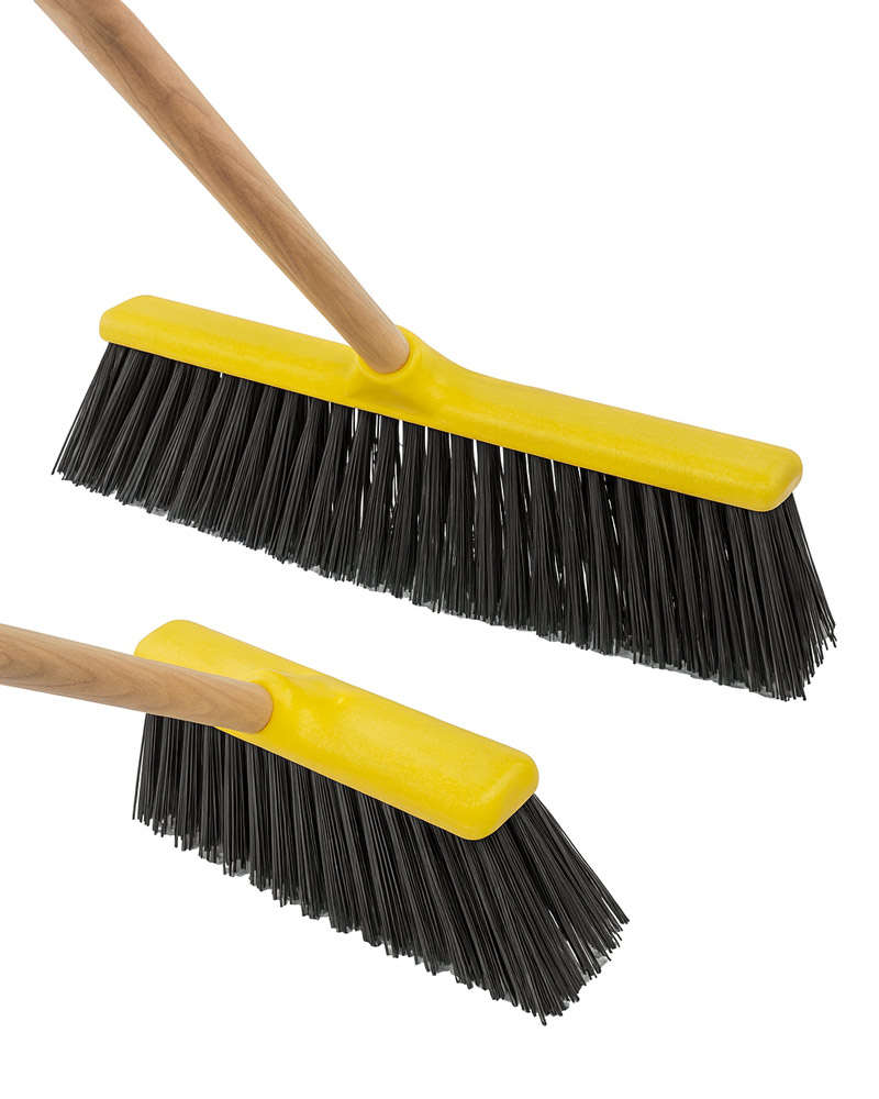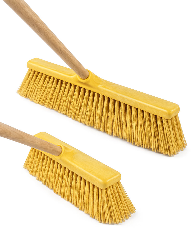 Cepillos industriales altamente duraderos y ligeros, ideales para barrer grandes superficies como construcciones, fábricas, almacenes y más. Fabricados con fibra sintética extrafuerte y reciclada, son perfectos para arrastrar polvo, suciedad y escombros. Disponibles en medidas de 30 cm y 50 cm, con rosca de Ø 28 mm. Sostenibles y resistentes, garantizando un barrido eficiente y ecológico.
