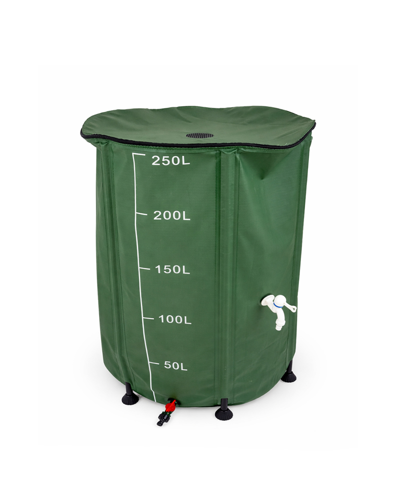 Recoge y almacena agua de lluvia de manera eficiente con este depósito de PVC resistente a la intemperie y la corrosión. Disponible en capacidades de 100L, 250L y 500L, su diseño plegable permite un fácil montaje, transporte y almacenamiento. Incluye rejilla para evitar contaminantes, válvula de desbordamiento, grifos y tapa con cremallera. Ideal para ahorrar agua y proteger el medio ambiente. ¡Aprovecha los recursos naturales de forma económica y práctica!