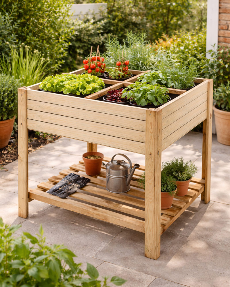 Este huerto urbano cuadrado es una excelente opción para quienes desean cultivar en casa de manera funcional y sostenible, optimizando el espacio y garantizando un entorno adecuado para sus plantas.