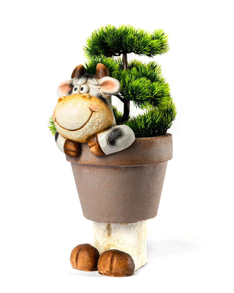 Macetero de poliresina con diseño de vaca. Perfecto para jardín, terraza o interior. Ideal para suculentas o plantas pequeñas.