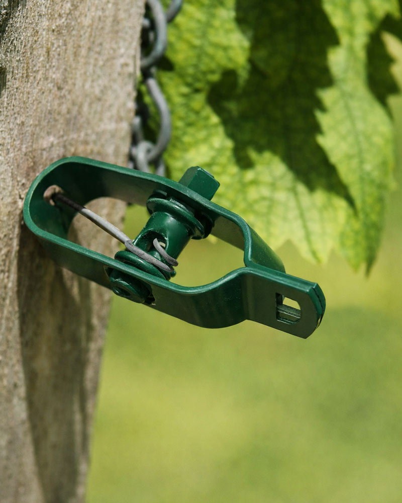 El Tensor Plastificado Verde es extremadamente fácil de instalar, lo que facilita su uso en una variedad de proyectos. Ya sea para montar vallas de seguridad, cercados para jardines, o incluso para estructuras agrícolas como viñedos, este tensor proporciona una sujeción firme y confiable, asegurando que el material de la valla o cercado quede bien tensado y en su lugar.