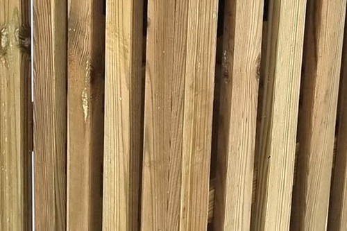 Es natural que aparezcan estas manchas y es causado por la reacción de la impregnación del TRATAMIENTO EN AUTOCLAVE y la resina que se encuentra en la madera de forma natural. Para eliminar estas manchas, deben cepillarlas cuando la madera esté seca.